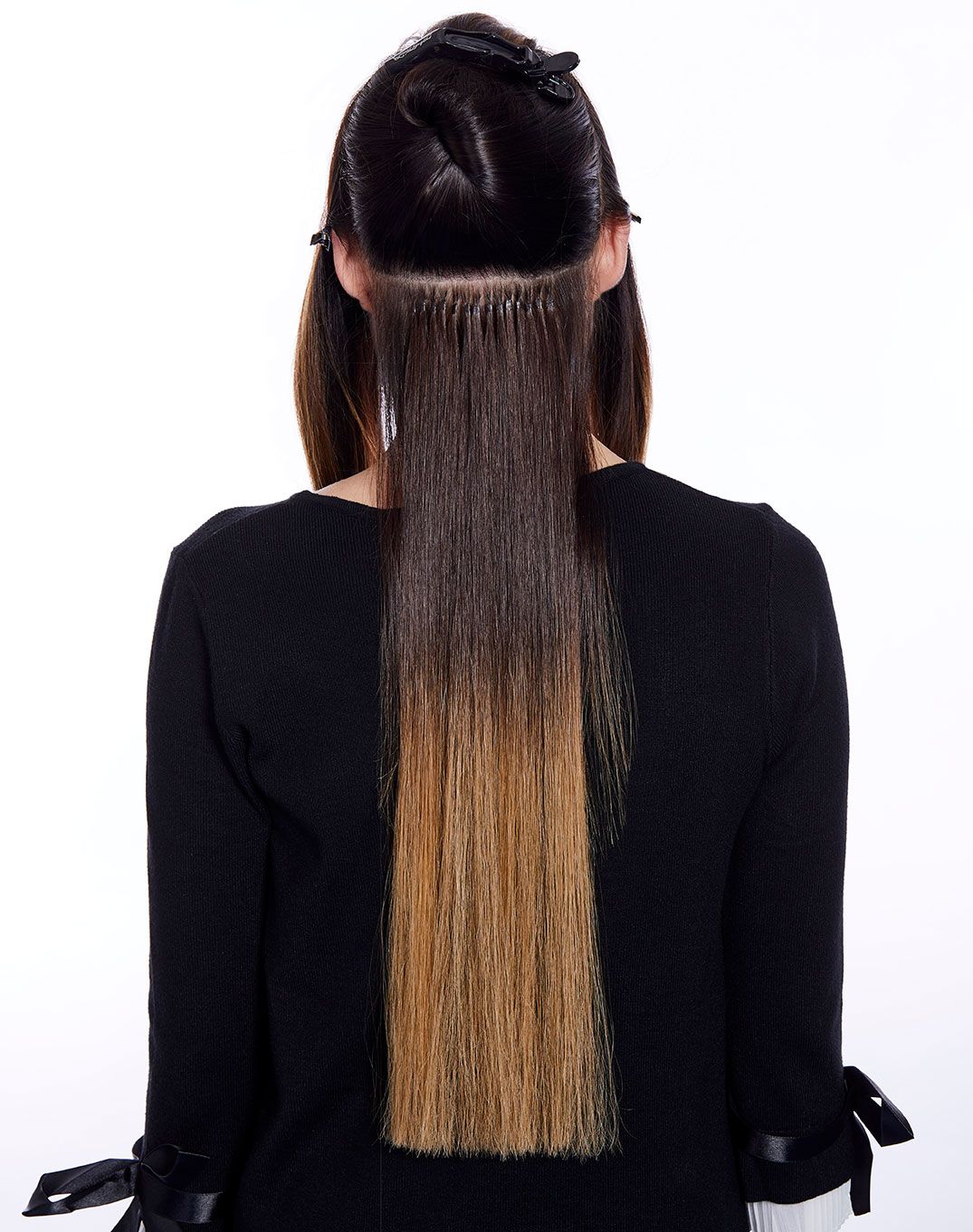 Bei der Ultrasonic-Variante werden Ultraschallwellen verwendet, um die Struktur der Verbindungsstelle zu verändern und so eine Verbindung zwischen Eigenhaar und Extensions herzustellen. Diese Methode ist besonders schonend für Haare und Kopfhaut und hält ca. 4 - 6 Monate.